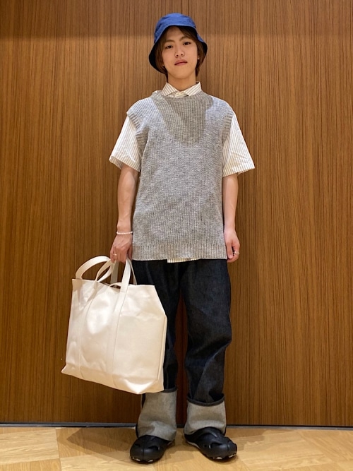 また、サイズ感を上げてきていただいても袖がしっかりと止まってくれたりするおかげで、だらしない印象にならないと思いますのでお客様のイメージするサイズ感を色々お試しください。