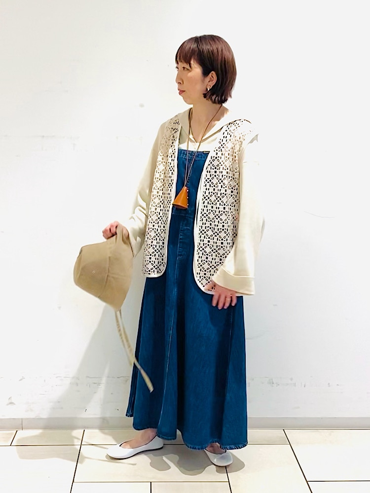 サイズ感:幾何学レースが目を引きます。丈はヒップラインまで。