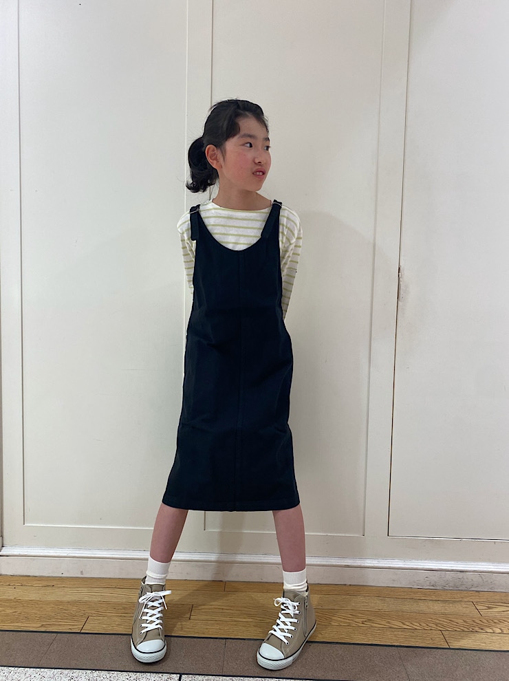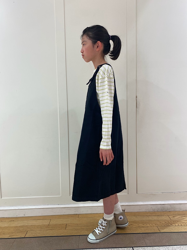 スッキリとしたジャンパースカートのコーデ🍊シンプルなのでインナーを選びません!新学期にもおしゃれで動きやすく🎒身長143cm