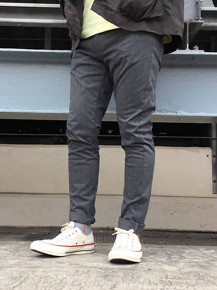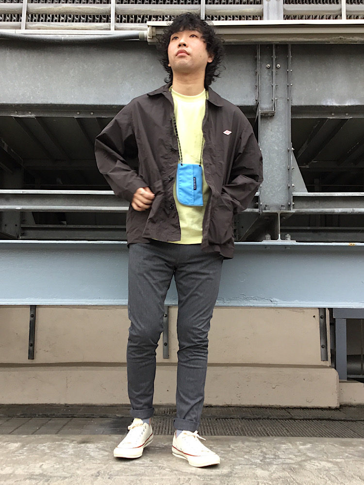 今回はDANTONのカバーオールと定番のポケットTシャツでアクセントに、WONDER SHAPEのスキニーパンツは360度の伸縮性があり美脚シルエットでストレスなく履いていただけます!