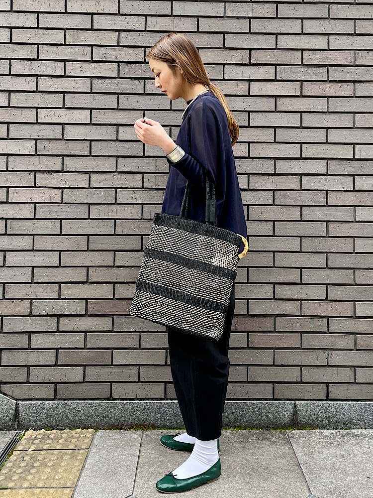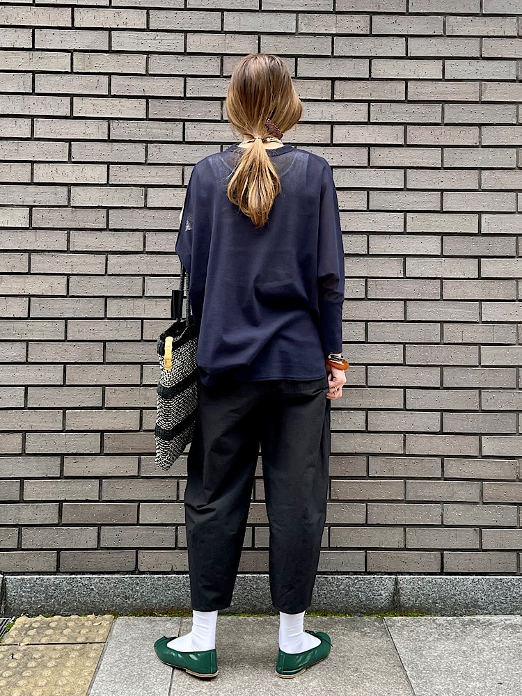 素材感・着心地:コットンの少しシャリ感のある素材。透け感があり、軽い印象で着用できます