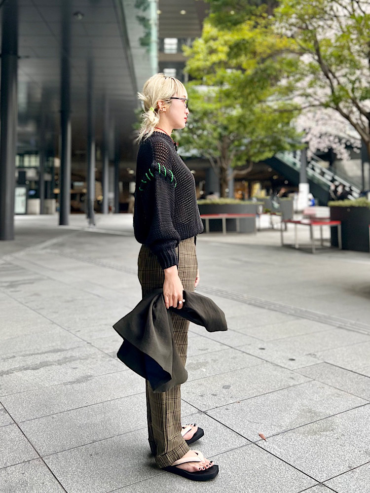 ・着こなしポイント : 少しかっちりとした印象ですが足元をビーチサンダルにすることにより抜け感のあるスタイリングにしました