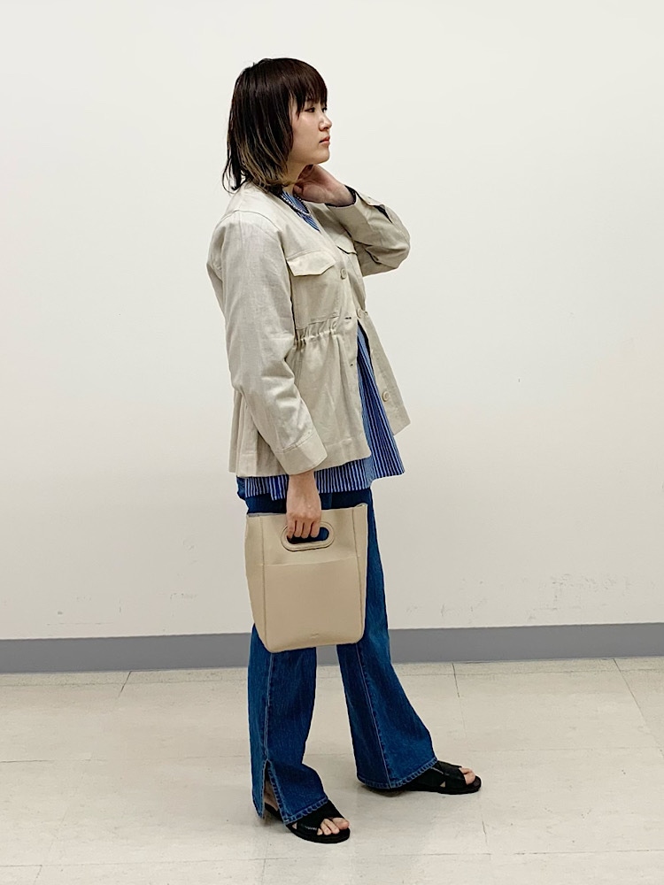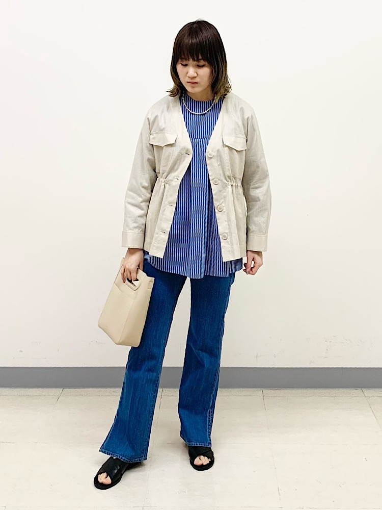 サイズ感:ウエストが絞って着れるので、元々は少し余裕がある身幅。腰回り隠れる着丈。