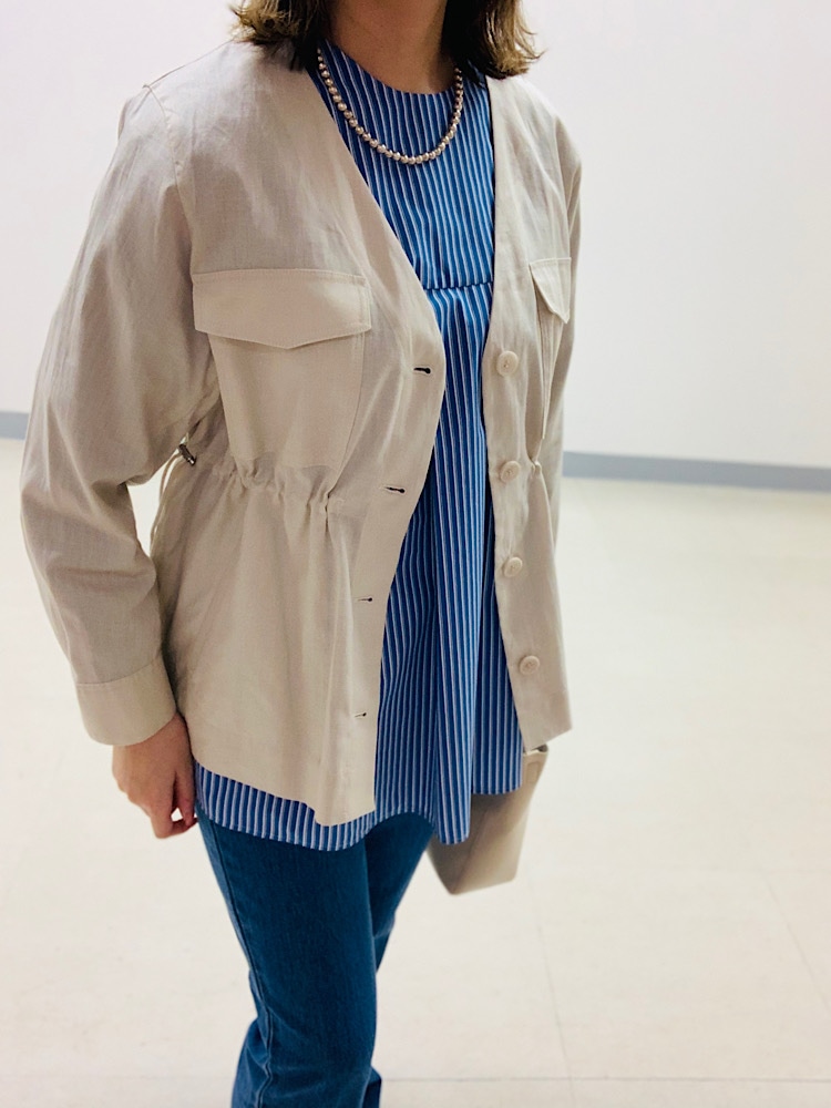 着心地:軽やかな生地で、インナー次第で長く着られる。