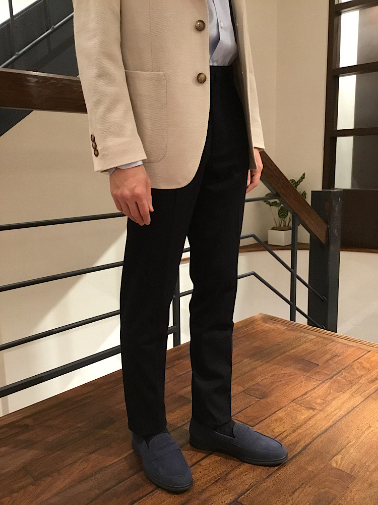 麻100%。シャリ感、伸縮性があり、春夏は快適に過ごせる。カジュアル合わせがしやすく、汎用性が高い。