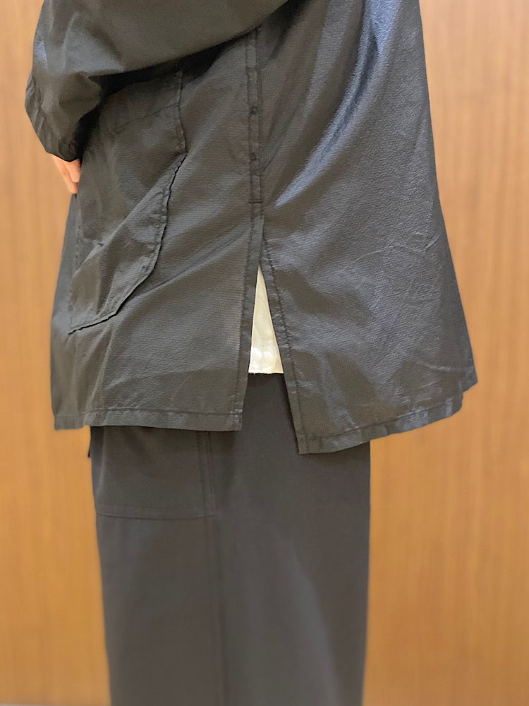 サイズ感:程よい身幅のゆとりでとても薄いリップストップの素材の為、真夏でも着用出来き長いシーズンで着用できるアイテム