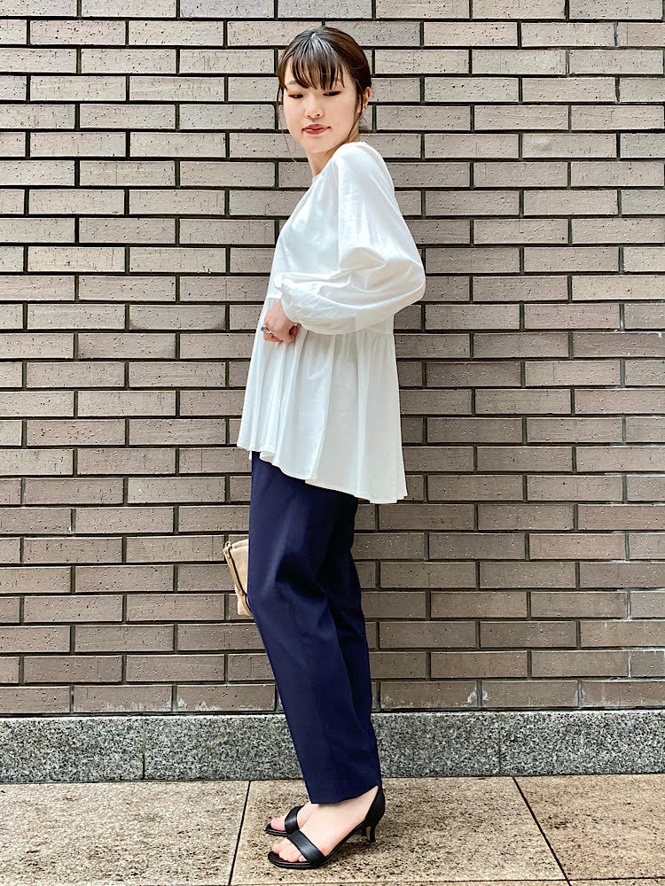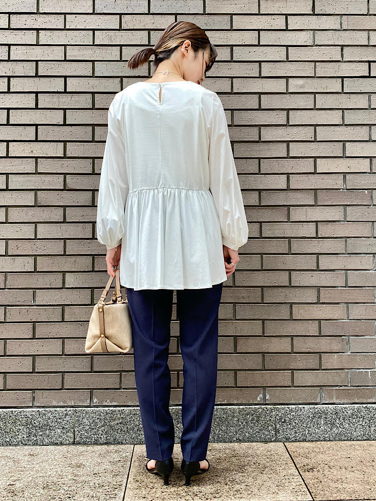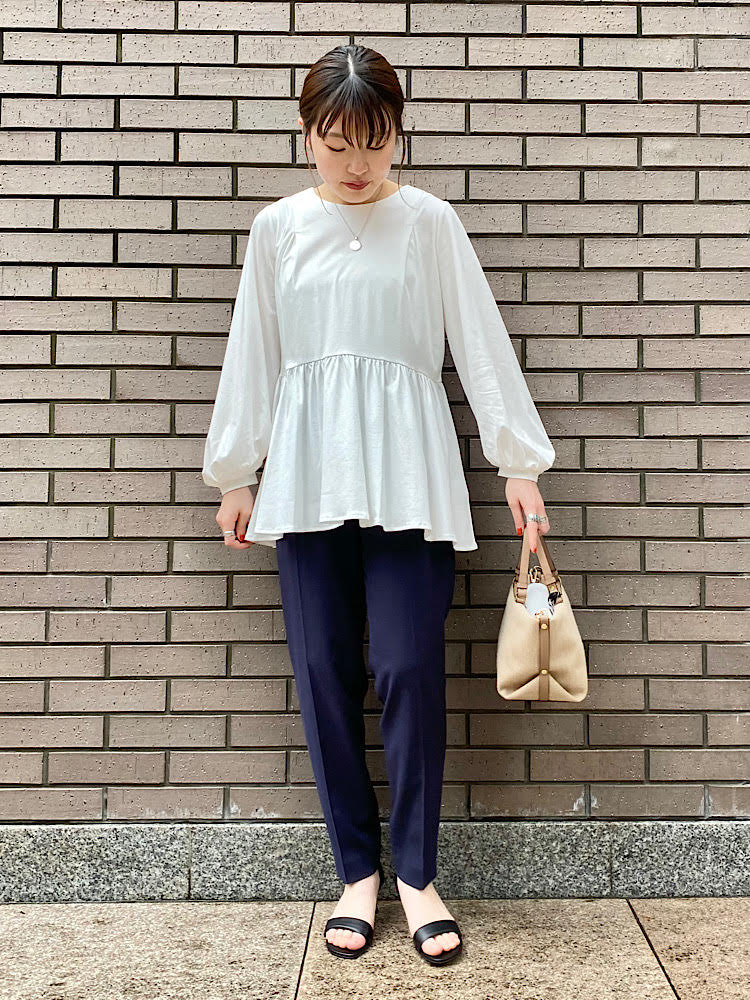 ペプラムプルオーバーをきれいめにコーディネート