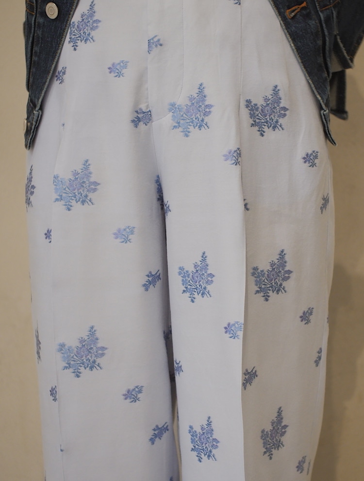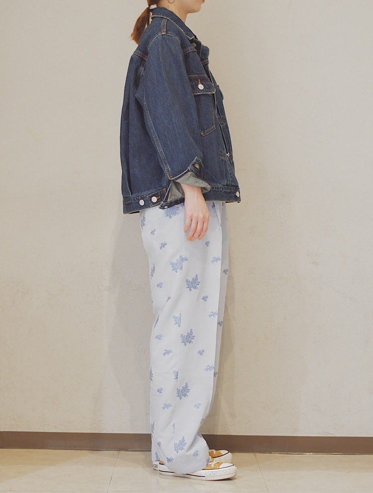 柄がとても可愛い一着。シンプルなコーディネートに映えるパンツです。