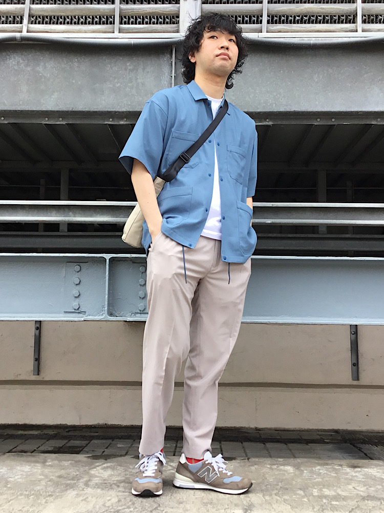今回は爽やかなシャツブルゾンにクールマックスのアンクルパンツを合わせました。若年層向けのインフルエンサーファッションをイメージしてコーディネートしました!
