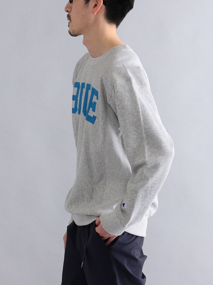 グレー×ネイビーで上品にまとめたスウェットスタイル。