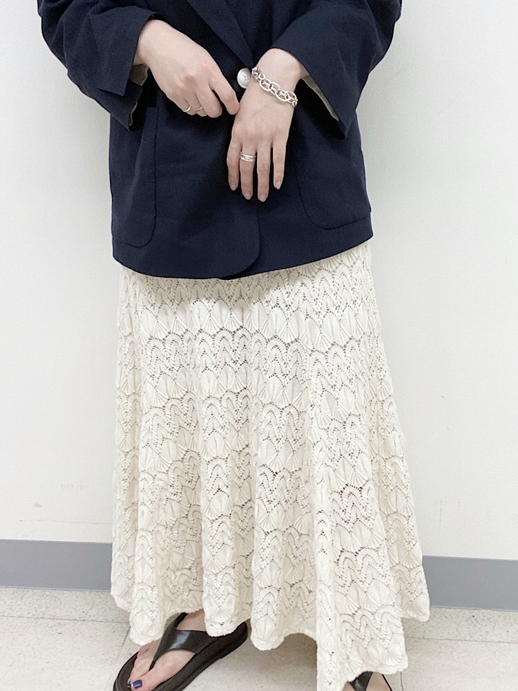 着心地:総レースなので女性らしい印象で着用できます。ジャケットやスエットなどカジュアルなアイテムとミックスしても素敵です。