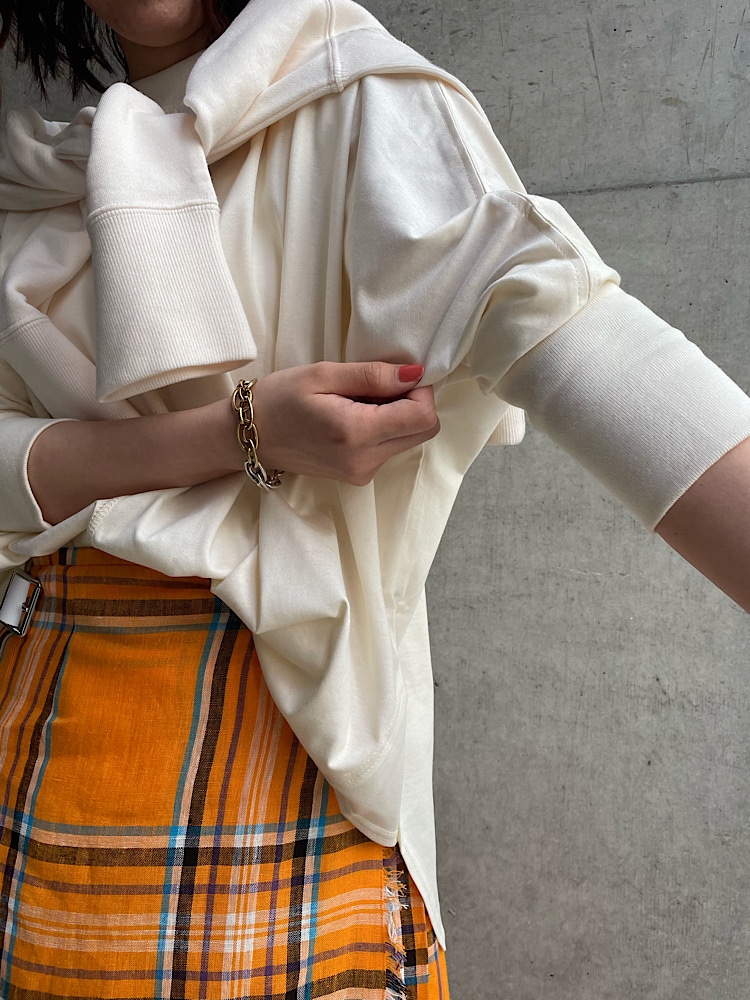 サイズ感:身幅はかなりゆったりしていますが、カフスが長めで腕周りはスッキリしているので、メリハリがあって可愛いです!
