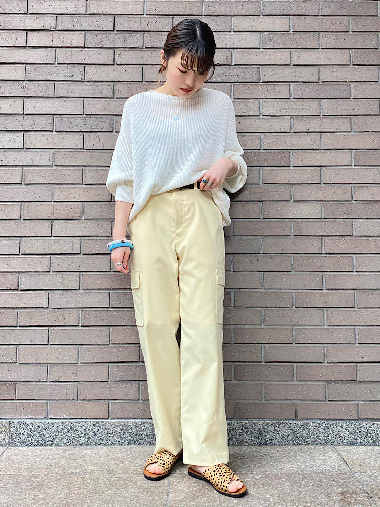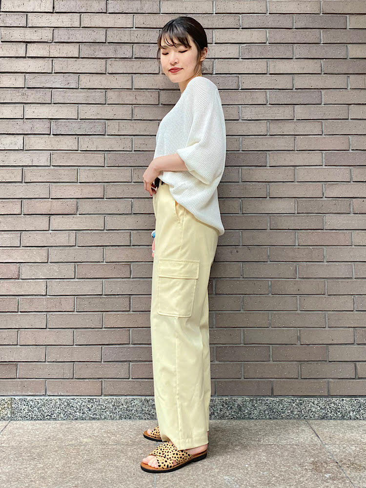 ポリエステル素材なのでカジュアルすぎない印象のパンツです