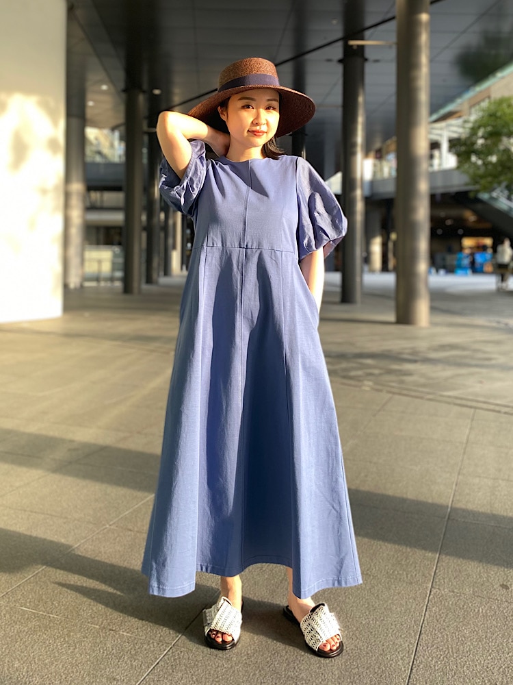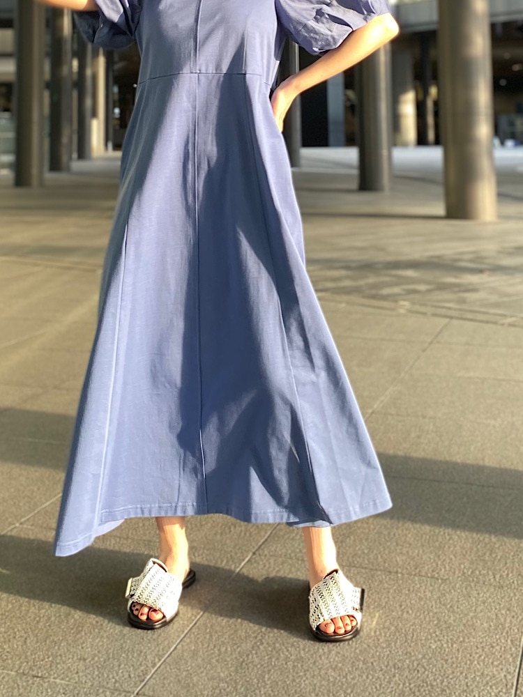 着心地:見た目よりもしっかり重めの生地のワンピースです。透け感はなく、夏場でもインナーの心配なく着用頂けます。そでの部分がボディと素材が変わっていてシンプルなデザインでも一枚でめりはりのあるスタイリングに。体のラインを拾わずばさっと着られます!