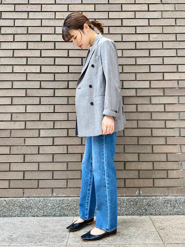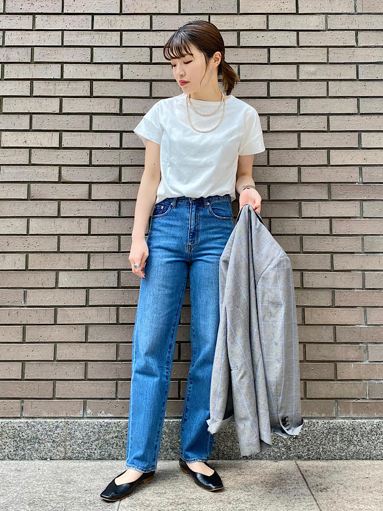 首元はシルバーアクセサリーを重ね付けしてクールな印象に