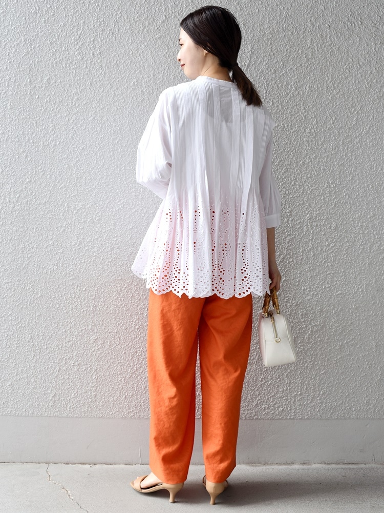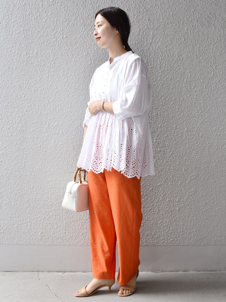 ドロストパンツと合わせて、リラックス感のあるスタイルに