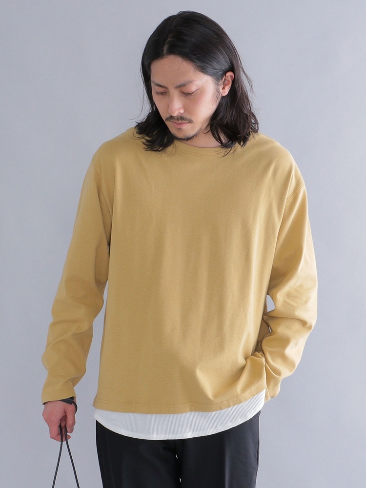 素材感:ネックと裾部分にラウンドしたワッフル生地を配した、フェイクレイヤード仕様。
