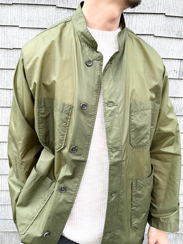 素材感/着心地:薄手のナイロンリップストップで夏まで着用出来ます。