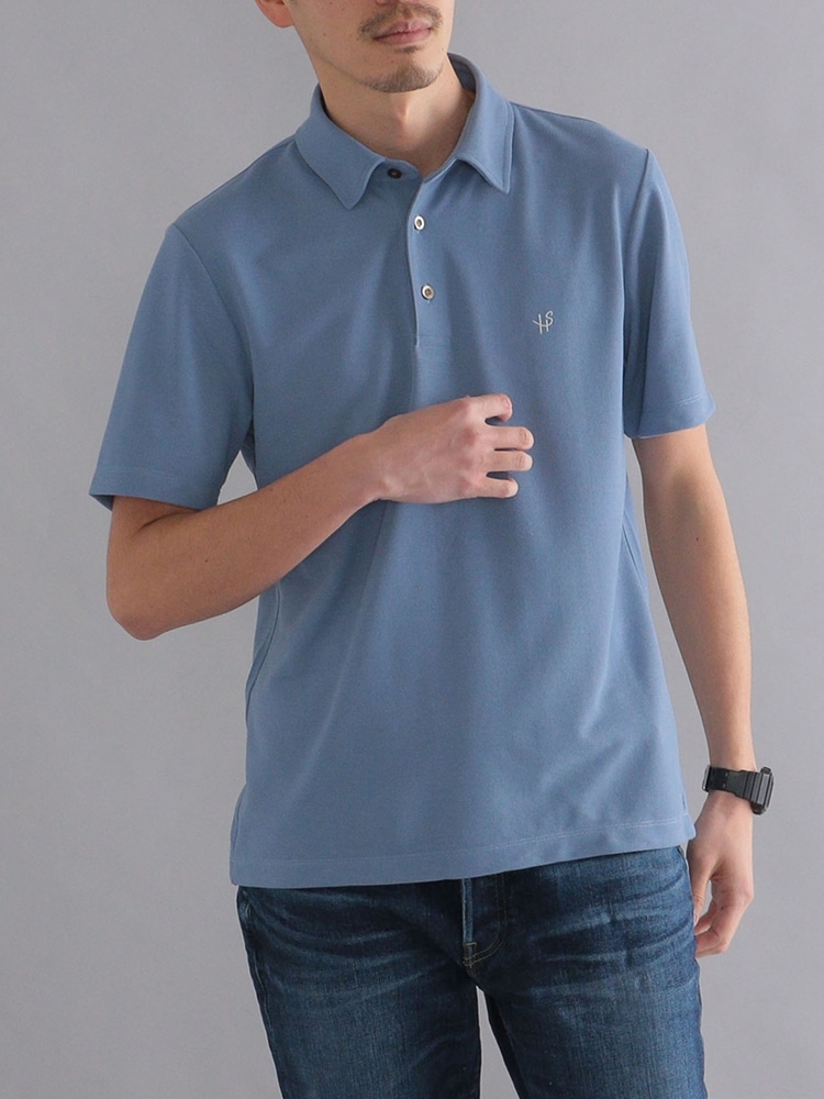 カジュアルなスタイリングもおすすめなレギュラーカラーポロシャツ。