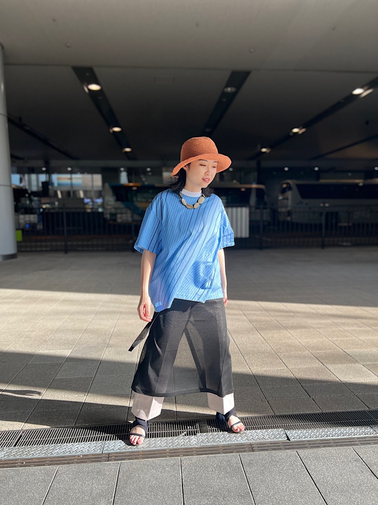 大阪はここ数日で急に気温がぐっとあがってきました。Tシャツで少し見せしてヘルシーにシーズナルにスタイリングしてみました◎