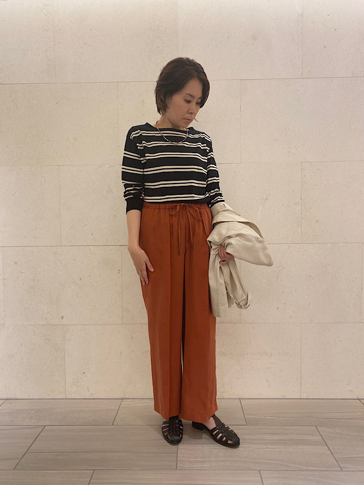 ◆素材感・着心地:ウエストはゴム仕様なので、ストレスフリーの履き心地です。