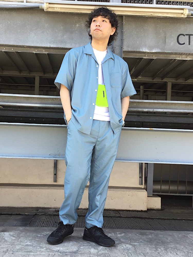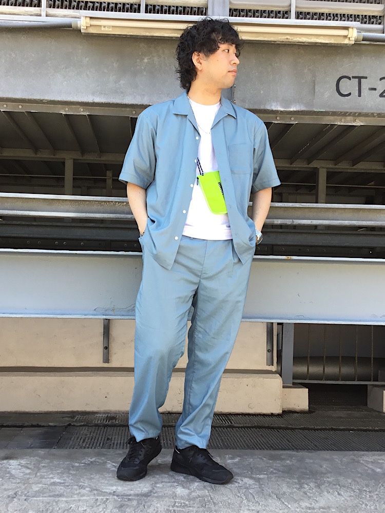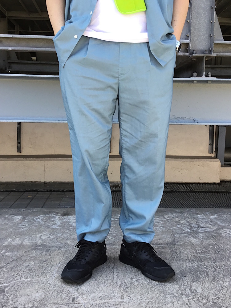 今回はハイブリットリネンのセットアップを着ています。ライトブルーは特にオススメです!