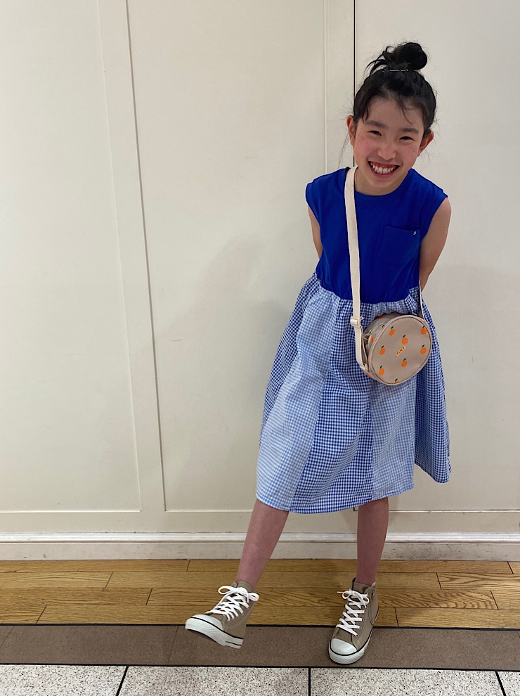 爽やかなブルーが目を引くコーディネート!羽織やインナーを合わせれば今すぐから真夏まで楽しんでいただけます🍉身長143cm