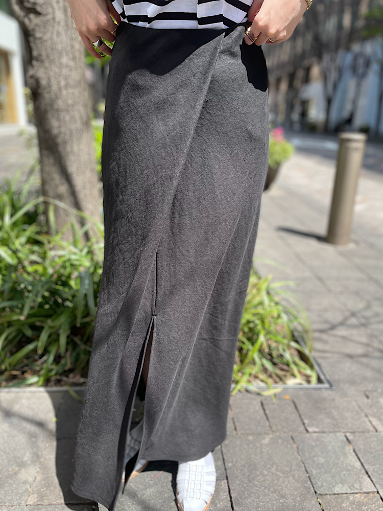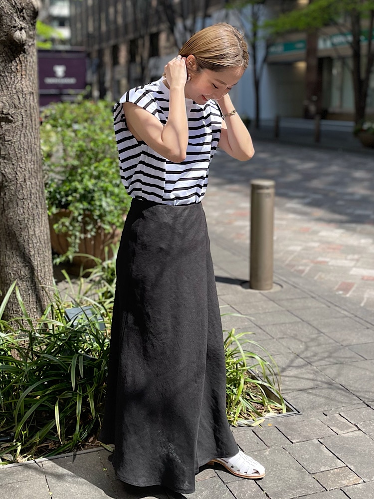 着心地:程良い透け感ありますが、1枚でも透けは気になりにくい。スリットが入っているので、ロング丈でもスッキリしたシルエット。