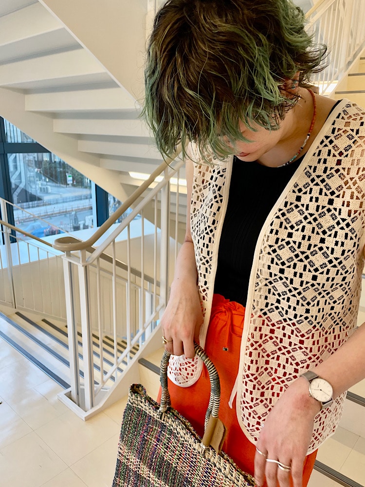 幾何学模様のレースベストがポイント🦺ちょこっと早い夏コーデ🌻