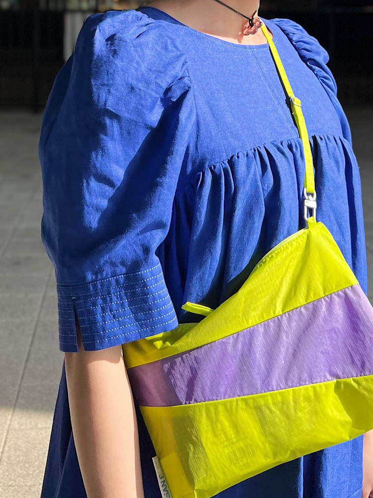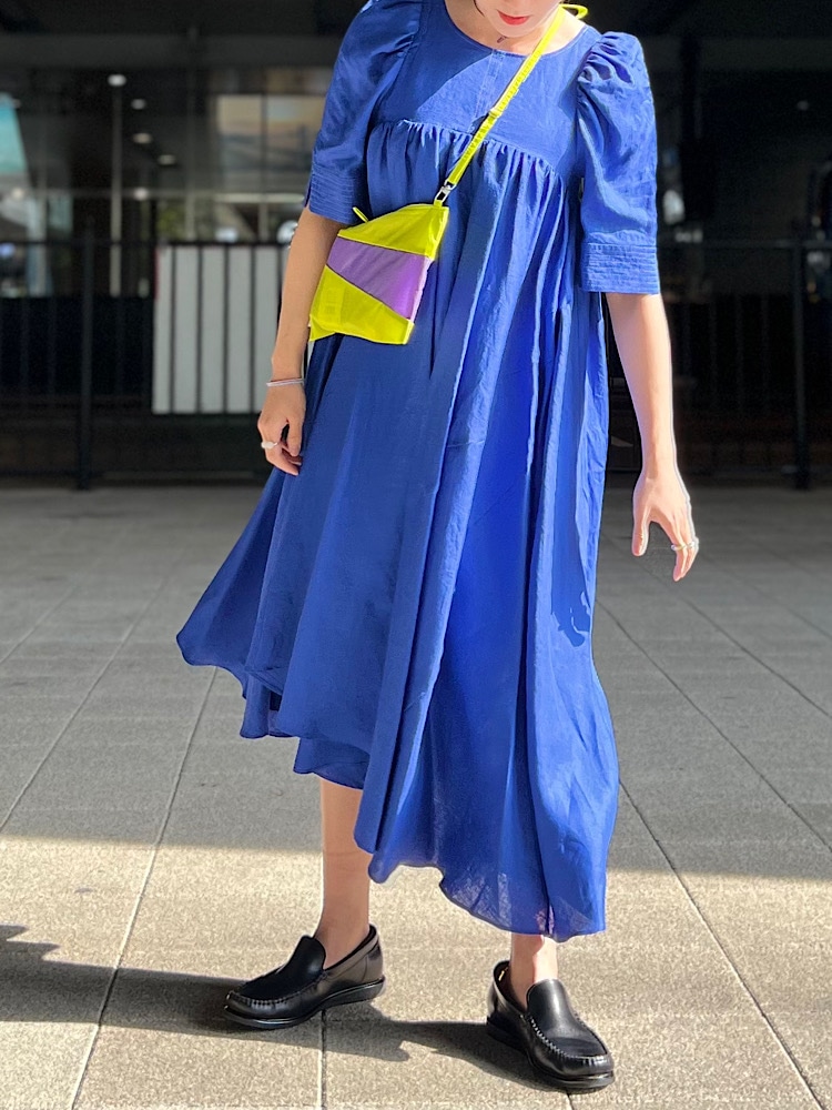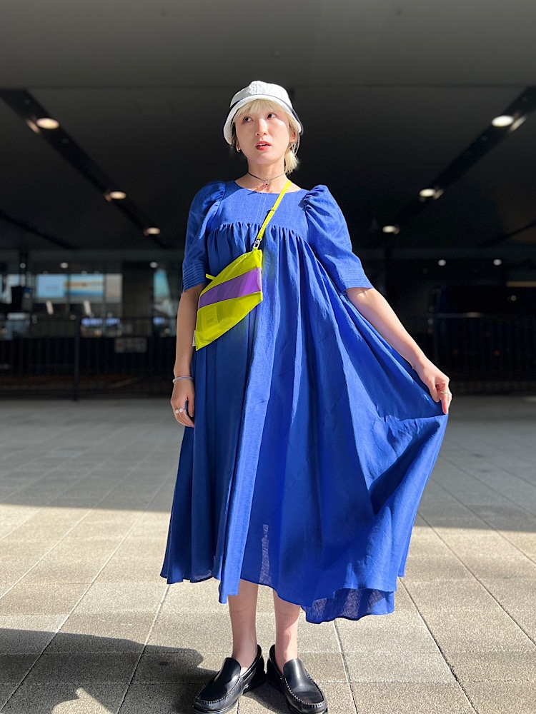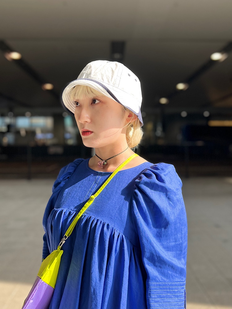パフスリーブで甘さがありますので、ハットやバッグでカジュアル感をだしてます