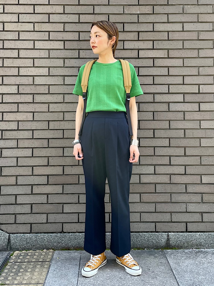 素材感・着心地:コットンの柔らかい素材感。程よい厚みと首元の開きで一枚でも着用しやすいです