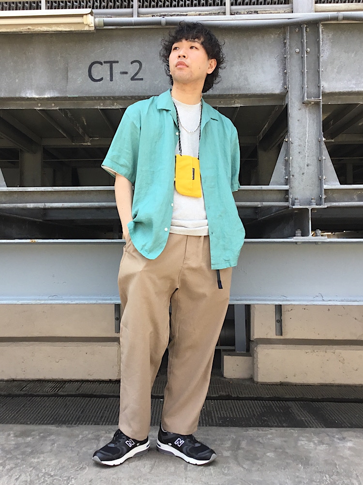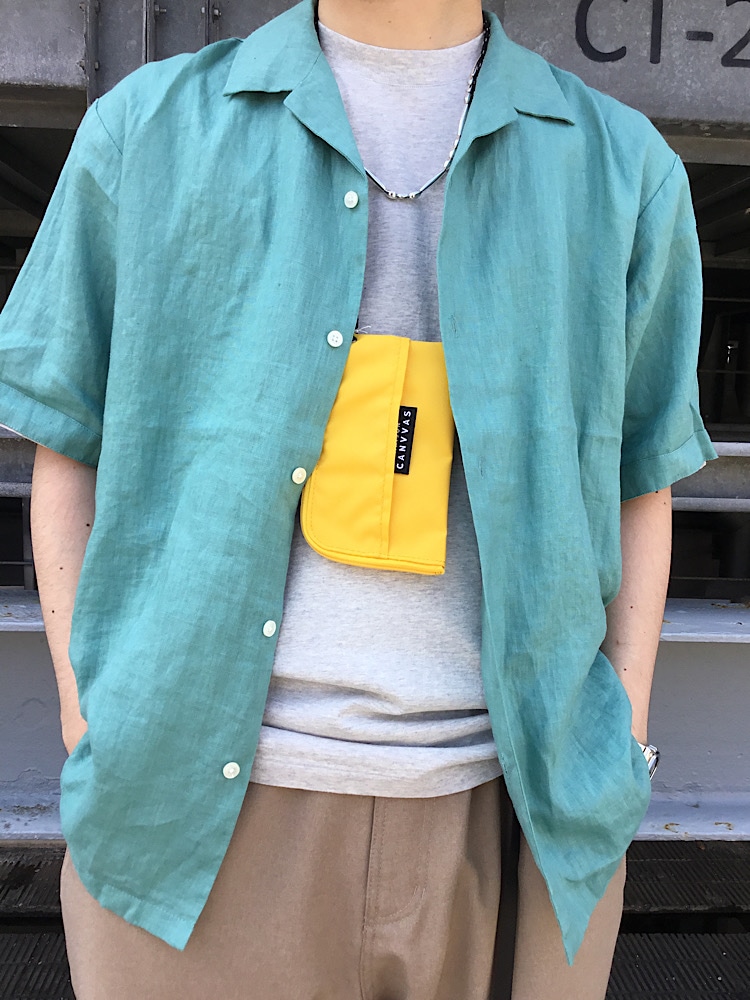 今回はオーガニックリネンのオープンカラーにグラミチのパンツを合わせました。MAISON CANVVASのポーチはカラー展開が豊富ですしとても使いやすいです!