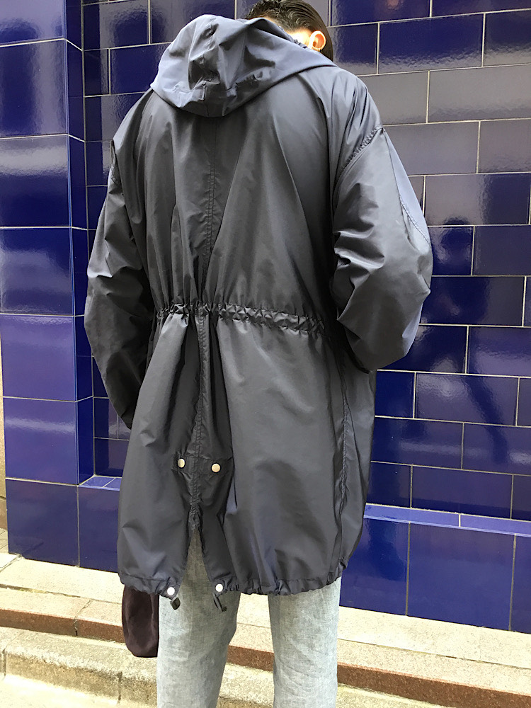・着用感:ナイロン製の軽量アウター。パッカブル仕様の為、持ち運びに便利です。ドローコードがフード、ウエスト、裾についており、防寒対策に加えてお好みのシルエットへ直接が可能。トレンド感を踏まえた一枚で様になるゆったりめのシルエットです。