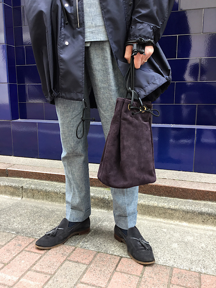 ・使用感:CINQANTAのスエードレザーを用いた上質な巾着型の鞄です。容量もあります。コーディネートをワンランク上に魅せます。