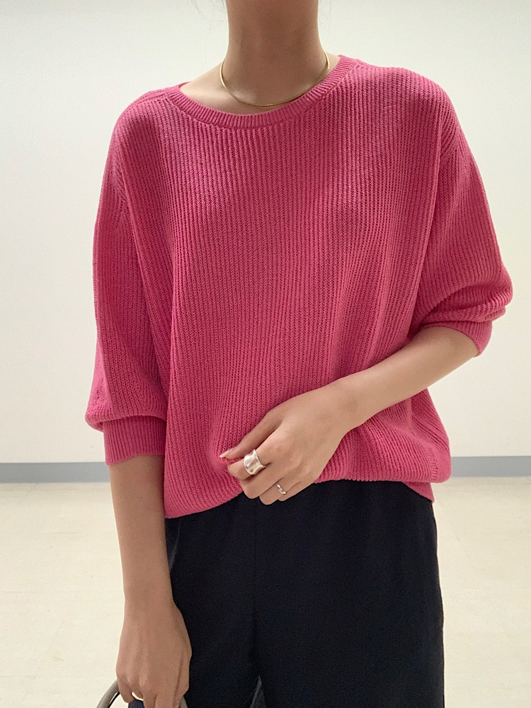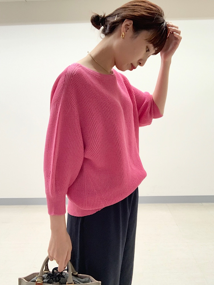 着心地:ペーパー素材でシャリ感のある素材。裾がリブになっていて、パンツ、スカートどちらも合わせて頂けます。