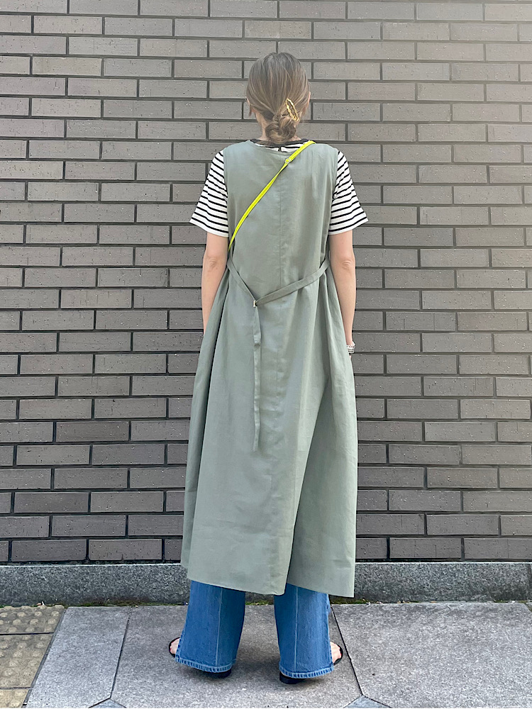 素材感・着心地:薄手のコットン素材。ワンピースに着丈の短いシャツジャケットがセットになっています。合わせて着用するのは勿論、単品で着回しも可能です