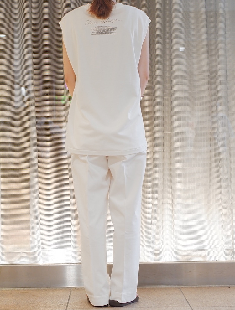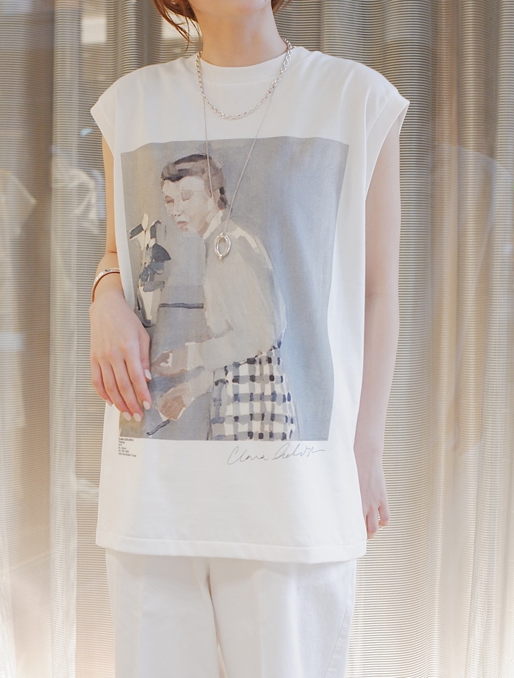 前面のプリントが印象的なカットソー。タンクトップでも肩山が隠れるので比較的着ていただきやすいかと思います!