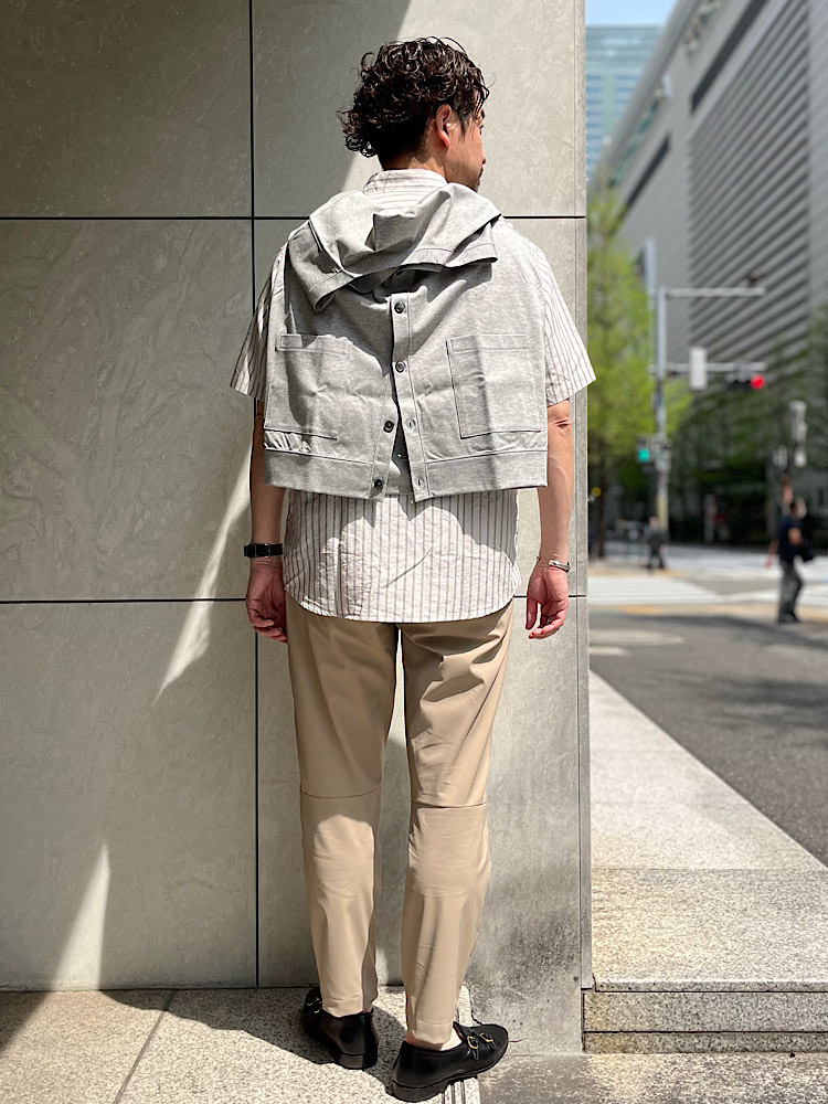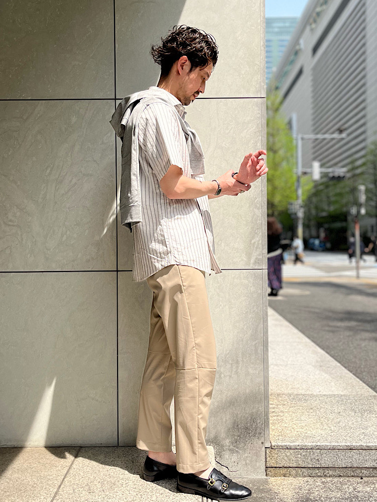 初夏のオフィスカジュアルスタイル。