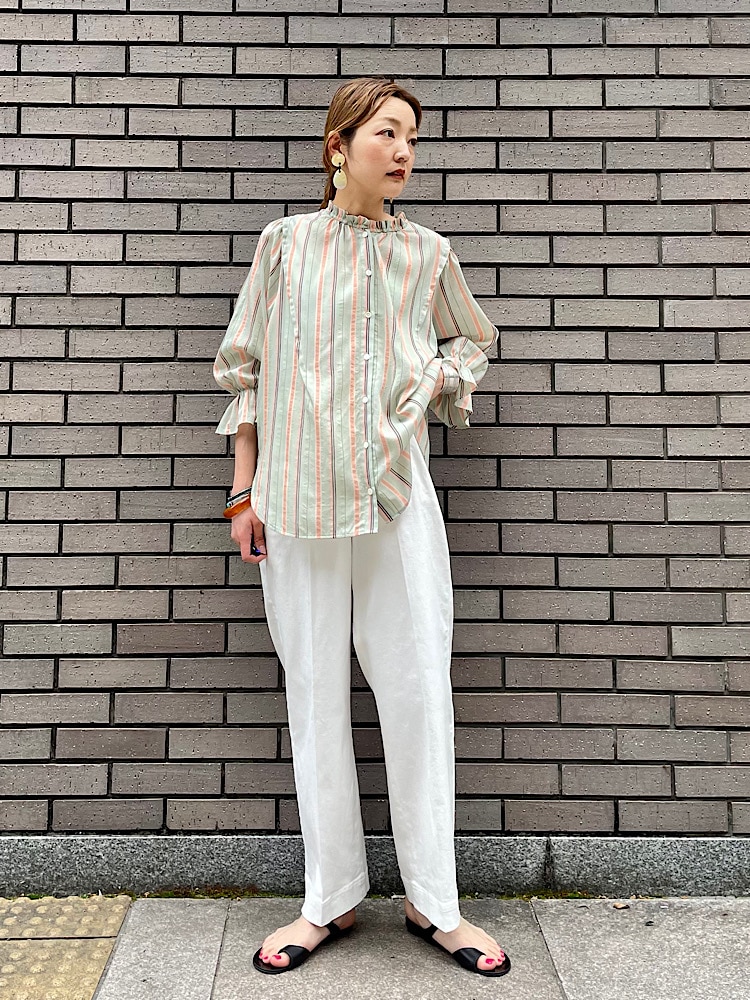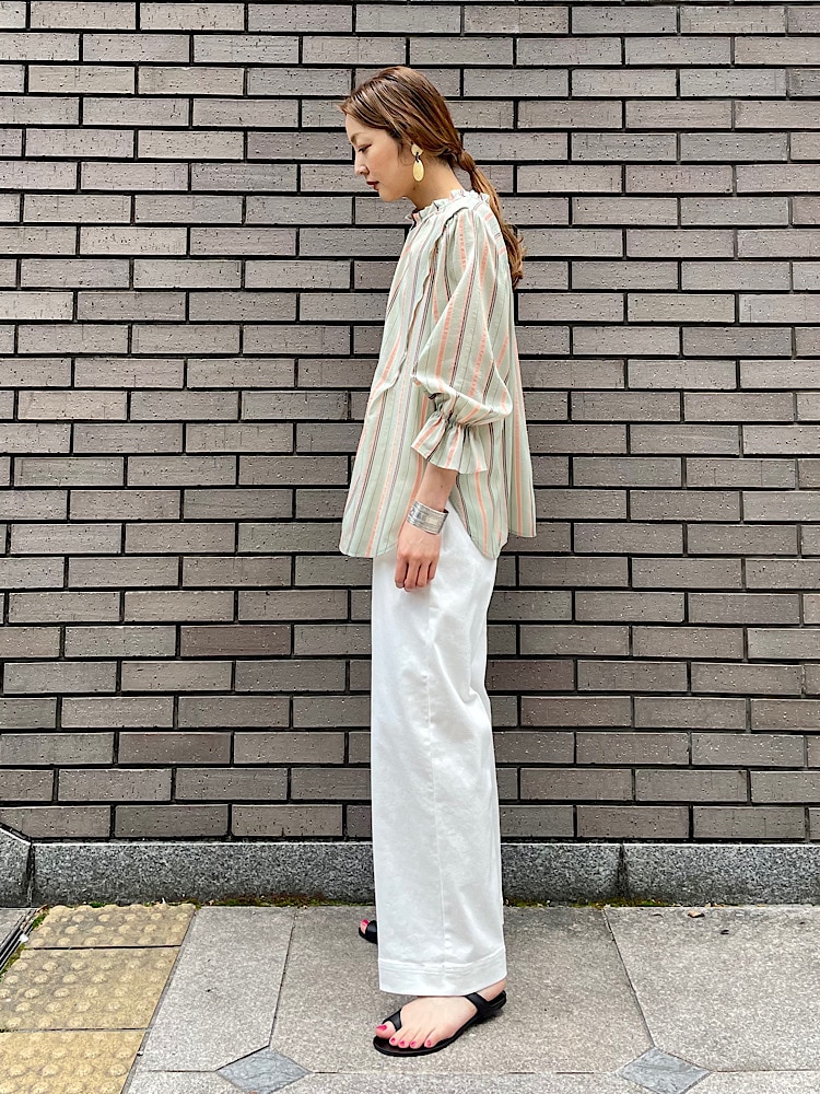 素材感・着心地:コットンの柔らかい素材。伸縮性があります。36がジャストでしたが、丈の長さを出したかったので38を着用しています