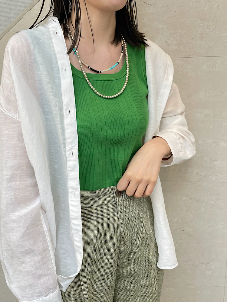 着心地:滑らかで肌触りの良いリネン素材です。日除け対策や冷房対策など、真夏まで大活躍します◎