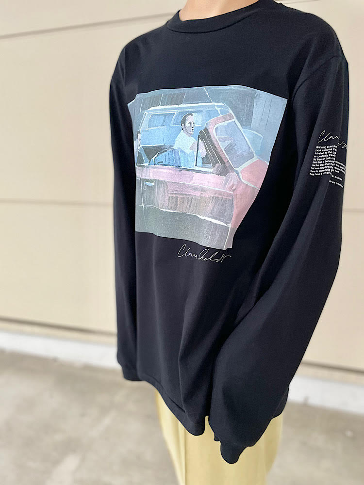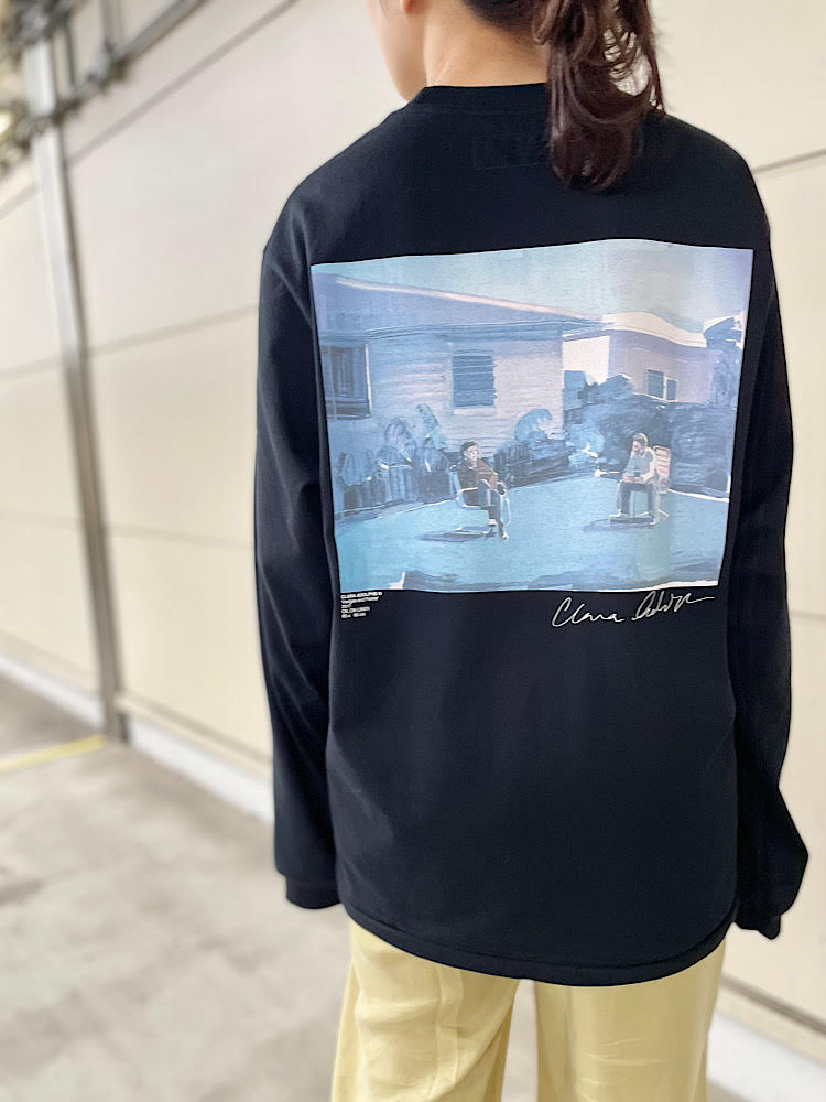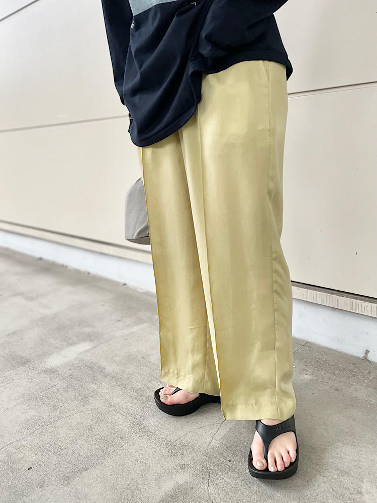 店舗限定JANESMITHのオーダーTシャツにグリーンのサテンパンツを合わせました。