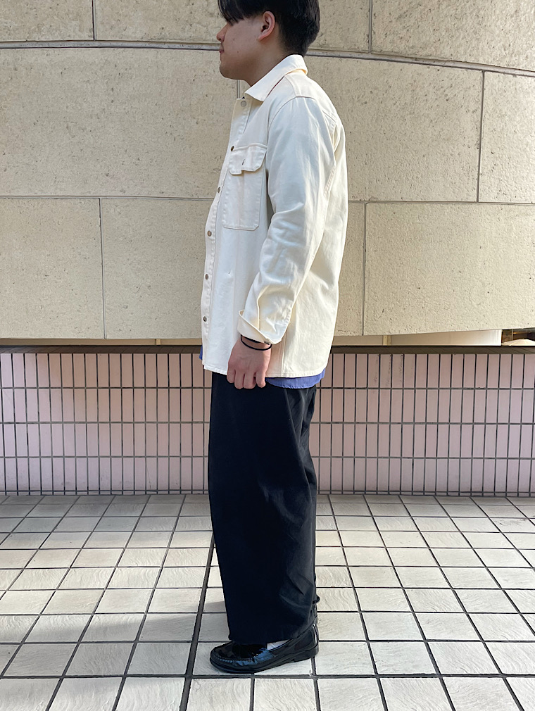 着心地:しっかりとした生地感で、ゆとりもあるのでインナーにも様々なアイテムを合わせられる。