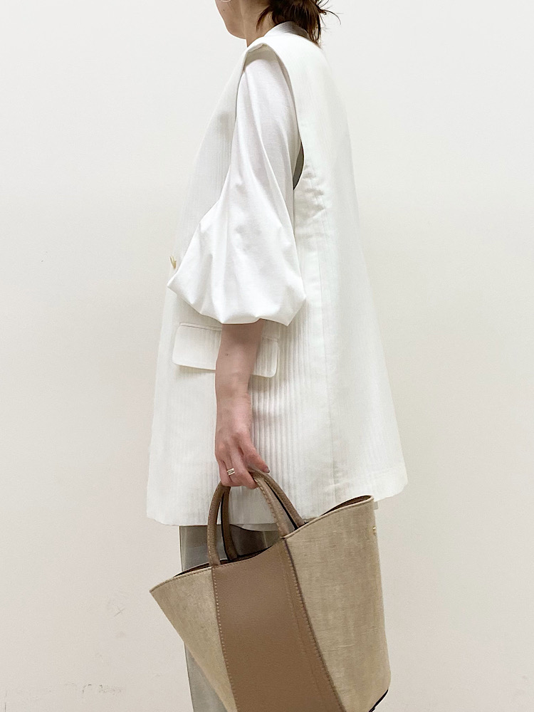着心地:少し肉厚な生地感ですが、とても軽い着心地です。これからに季節に使いやすいアイテムです。Vネックなので色々なアイテムとレイヤードしやすくなっています。