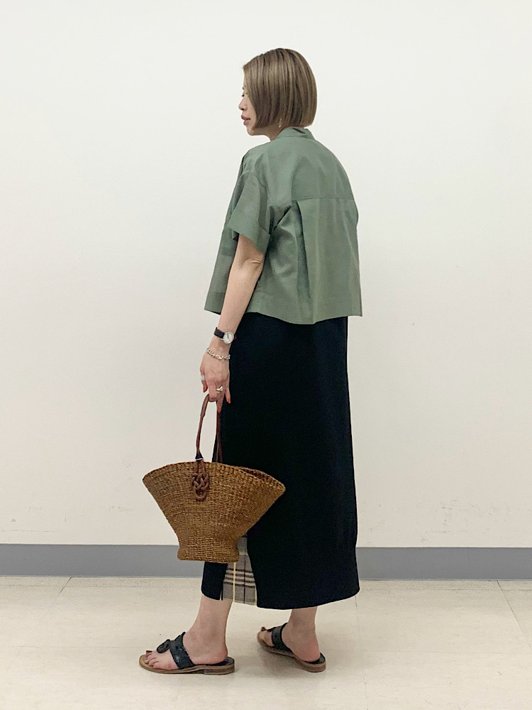 サイズ感:ウエストはジャスト。ヒップラインは強調することなく、すっきりしたシルエット。フィットしすぎず、いやらしくなりません。
