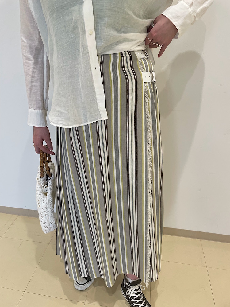 【素材感・着心地】1枚で主役になるスカート。丈も長いので安心感がある。