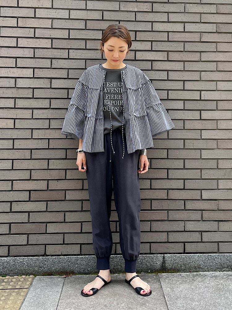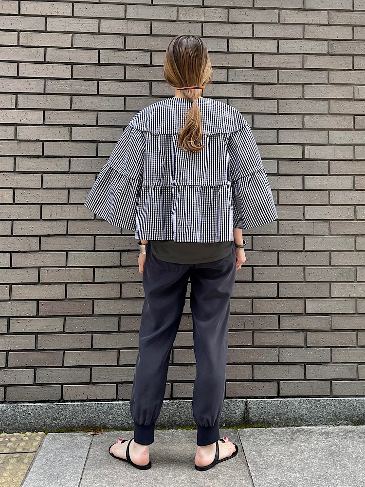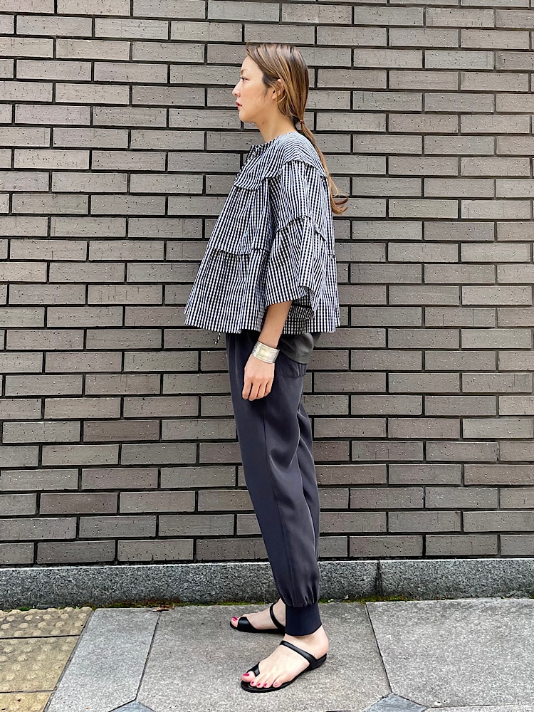 素材感・着心地:シルクのさらりとした素材感。柔らかく落ち感があります。裾のリブは柔らかく着用しやすいです