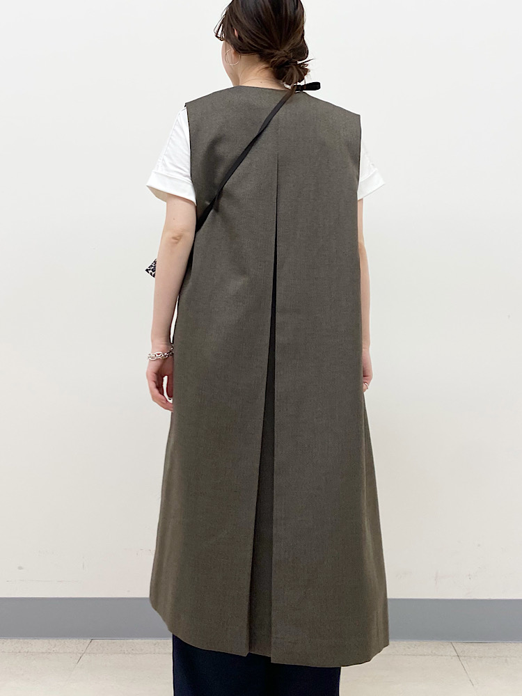 着心地:リネン素材で涼しげな印象です。後ろに大きなタックがあるので後ろ姿もとても綺麗でおすすめです。