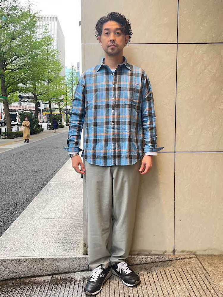 着心地:ウールのように見える素材でキレイめに合わせられます。
