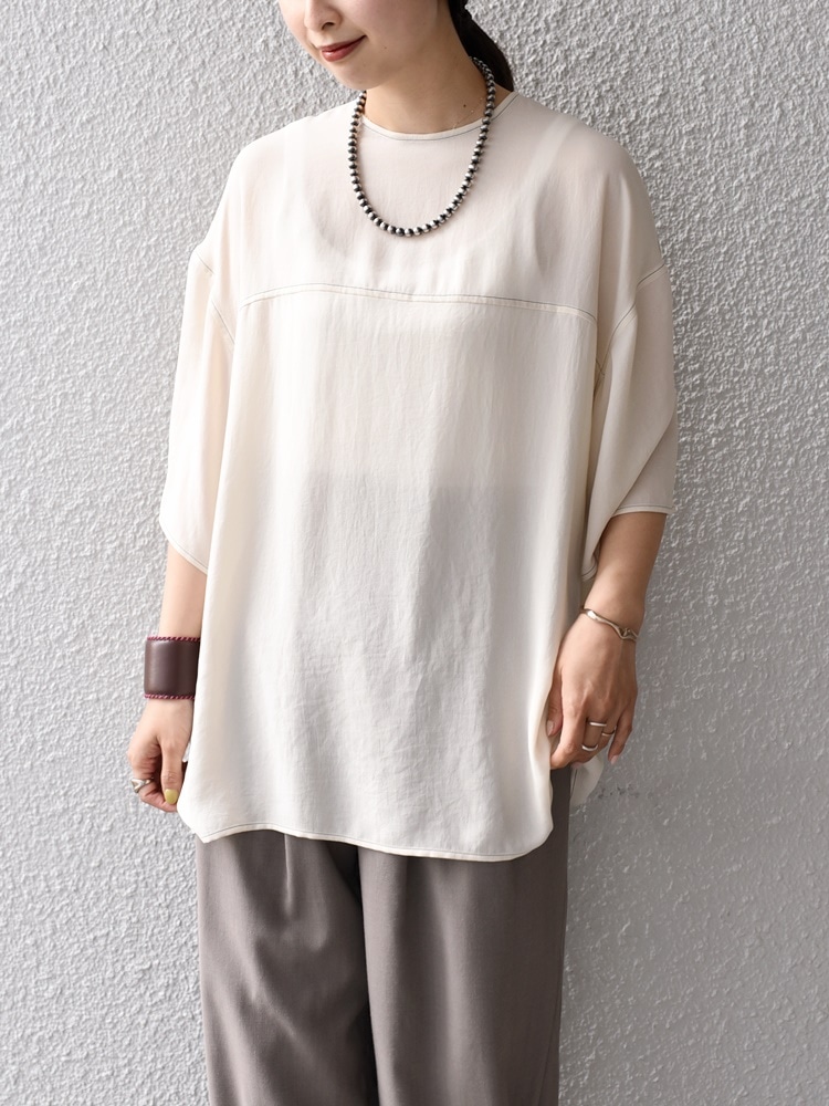 着心地:とても軽くストレスフリーな着心地。透け感があるので同系色のインナー合わせをおすすめします。