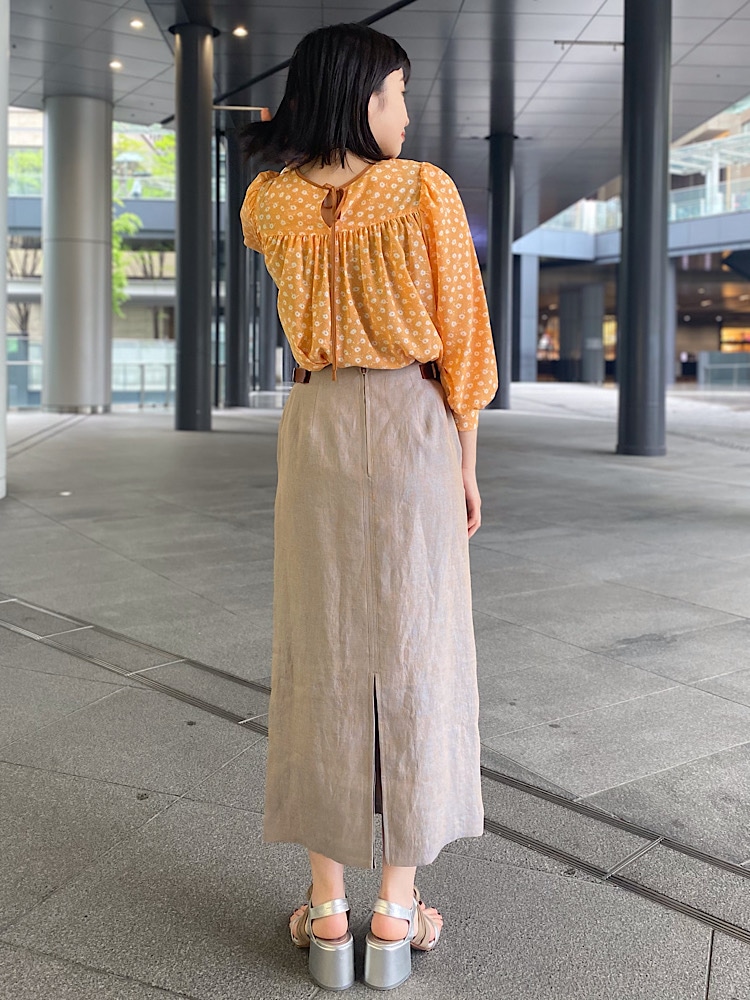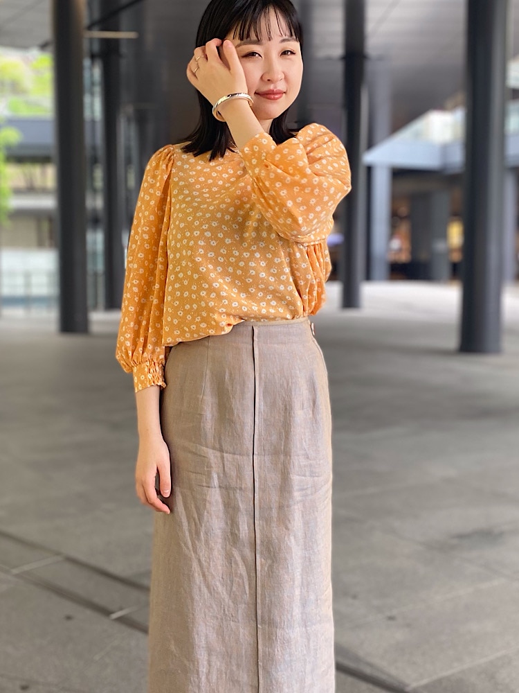 大阪は今日は雨です。オレンジのフラワープリントがレトロでとってもかわいいブラウスを着て雨のどんよりな気分を吹き飛ばしましょう!